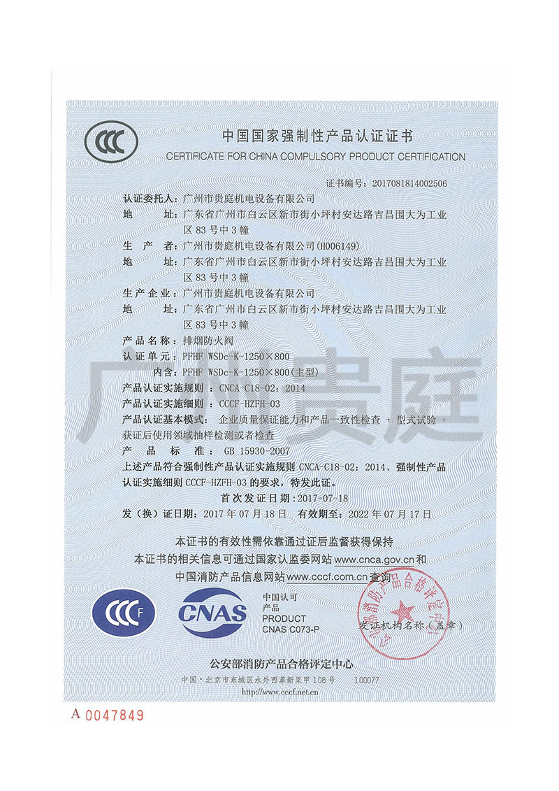 PFHF WSDc-K-1250*800通过3C认证